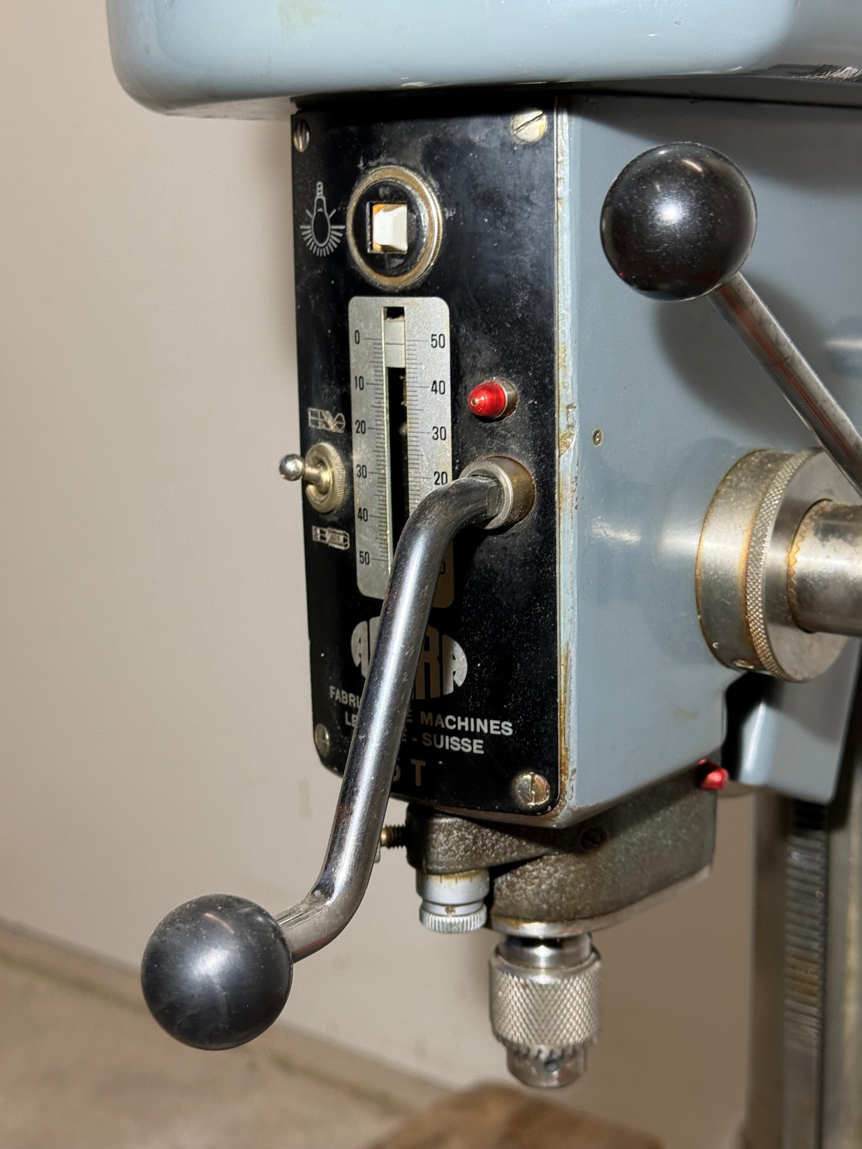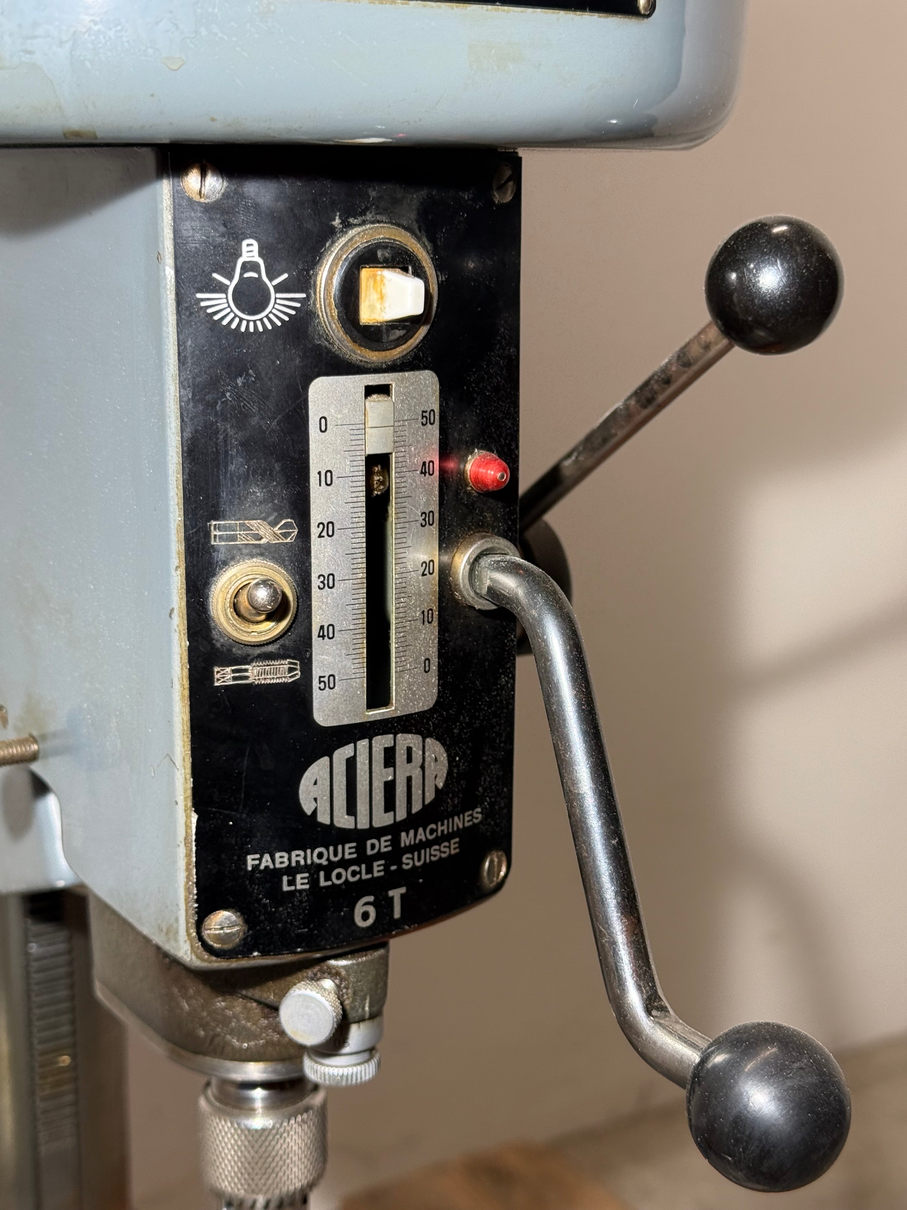 Die Aciera 6T ist eine hochpräzise Bohrmaschine, die sich durch ihre robuste Konstruktion und Vielseitigkeit auszeichnet. Mit integrierter Gewindeschneidefunktion ermöglicht sie effizientes Bohren und Gewindeschneiden in einem Arbeitsgang. Die präzise Spindelführung garantiert höchste Genauigkeit bei anspruchsvollen Bearbeitungsaufgaben. Ideal für Werkstätten, die Wert auf Zuverlässigkeit und Präzision legen. Kompakte Bauweise mit stabiler Grundplatte für sichere Fixierung.