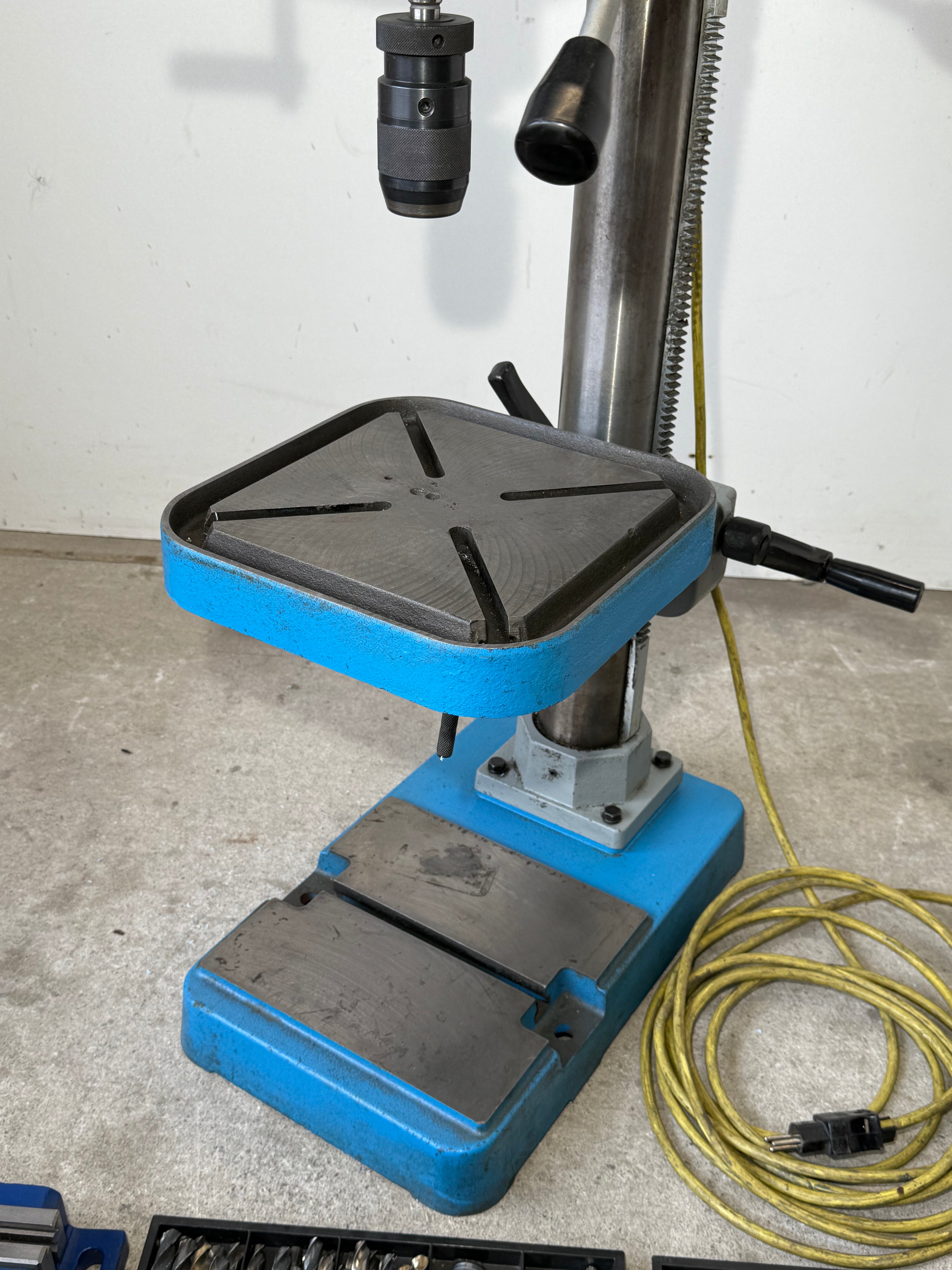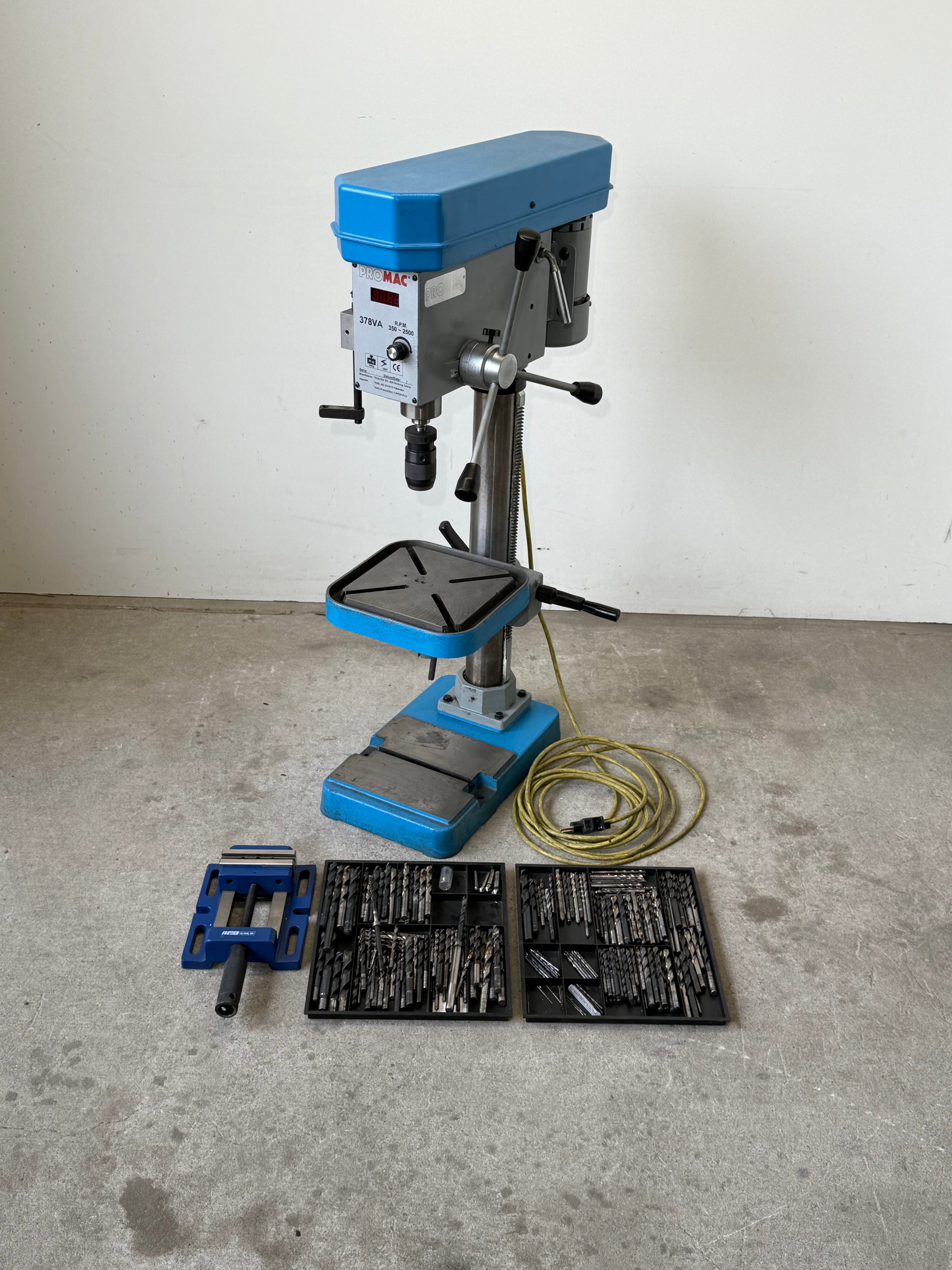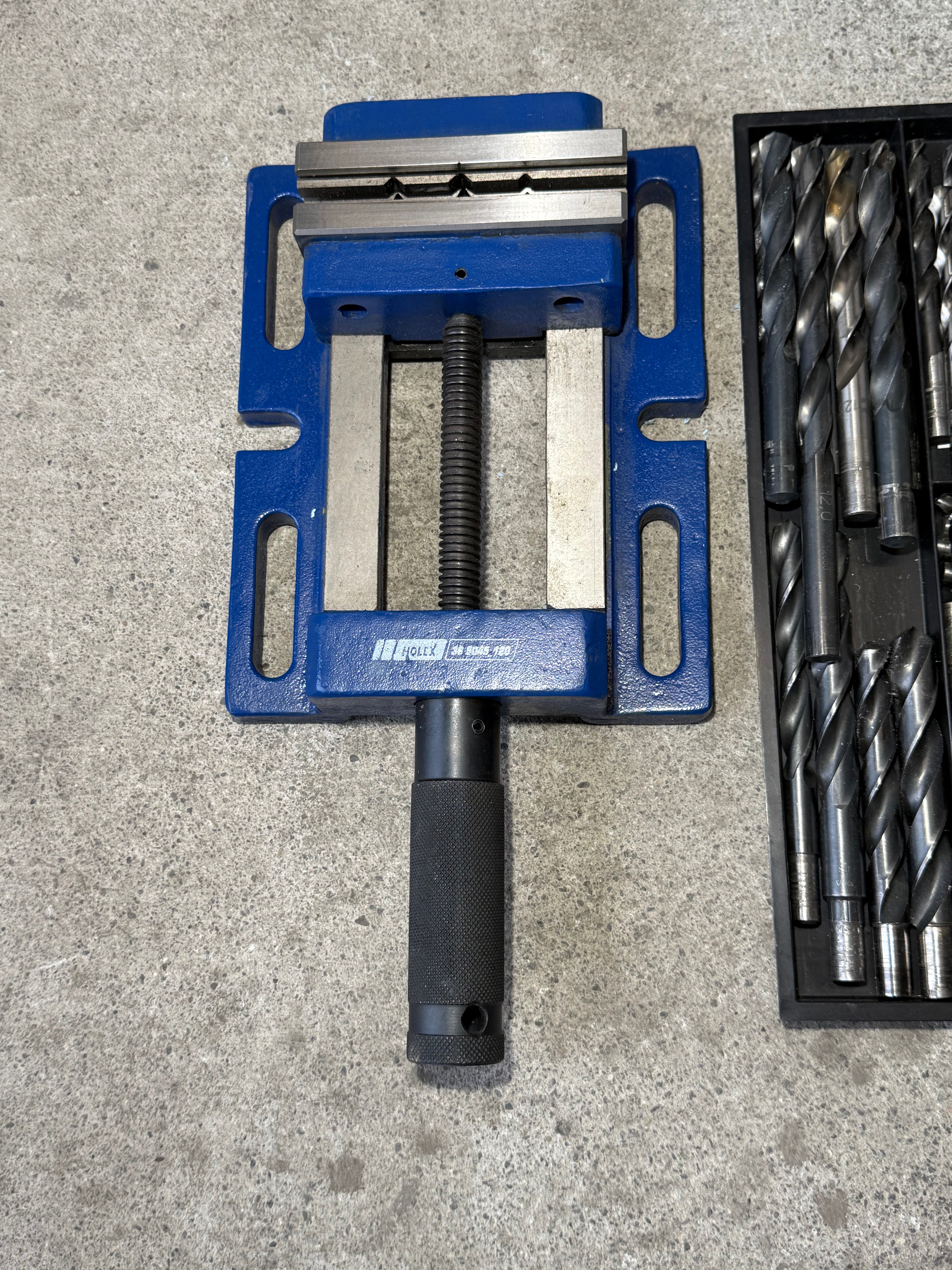 Inkl. Schraubstock und einem riesen Sortiment Bohrer.
