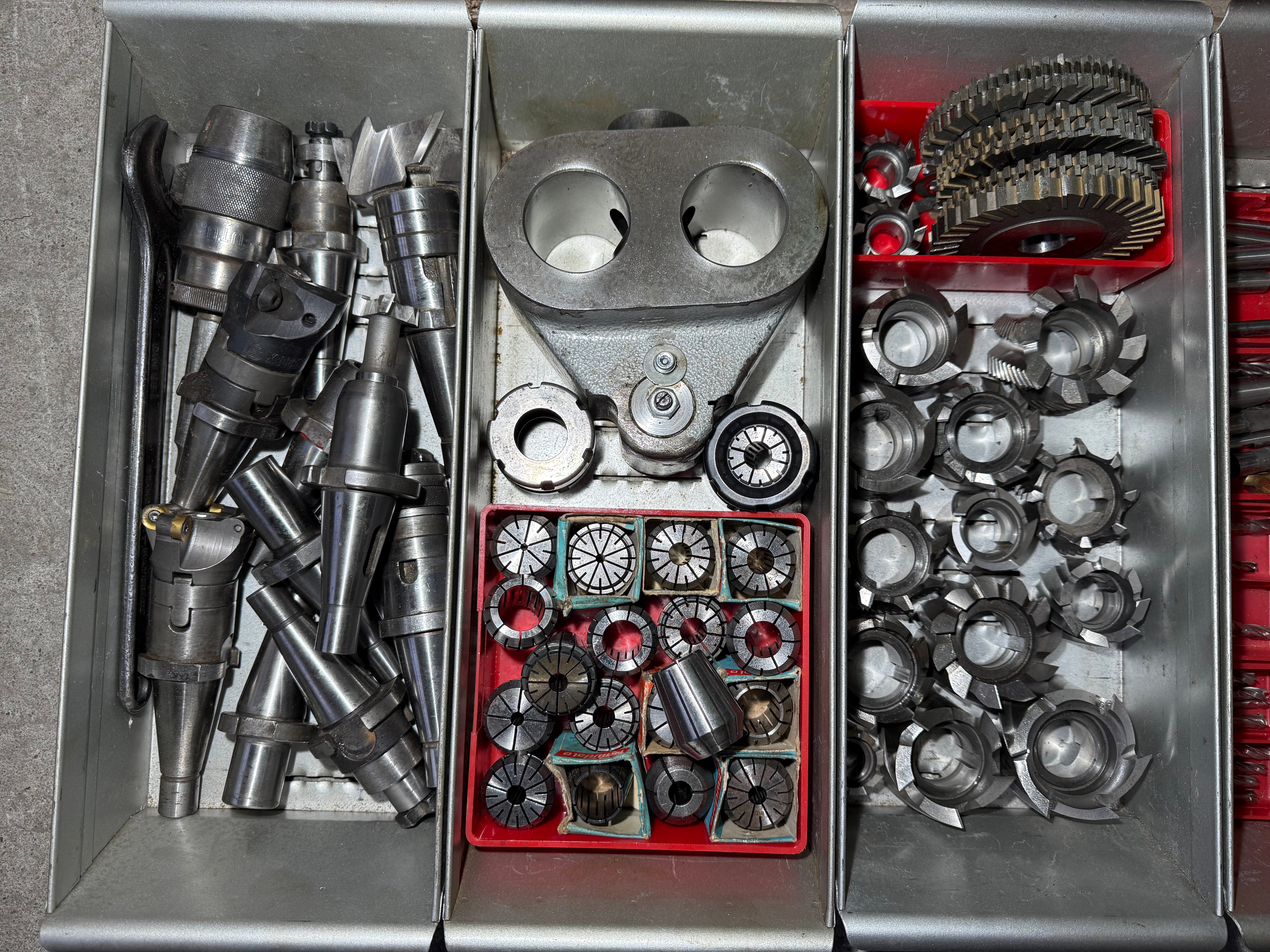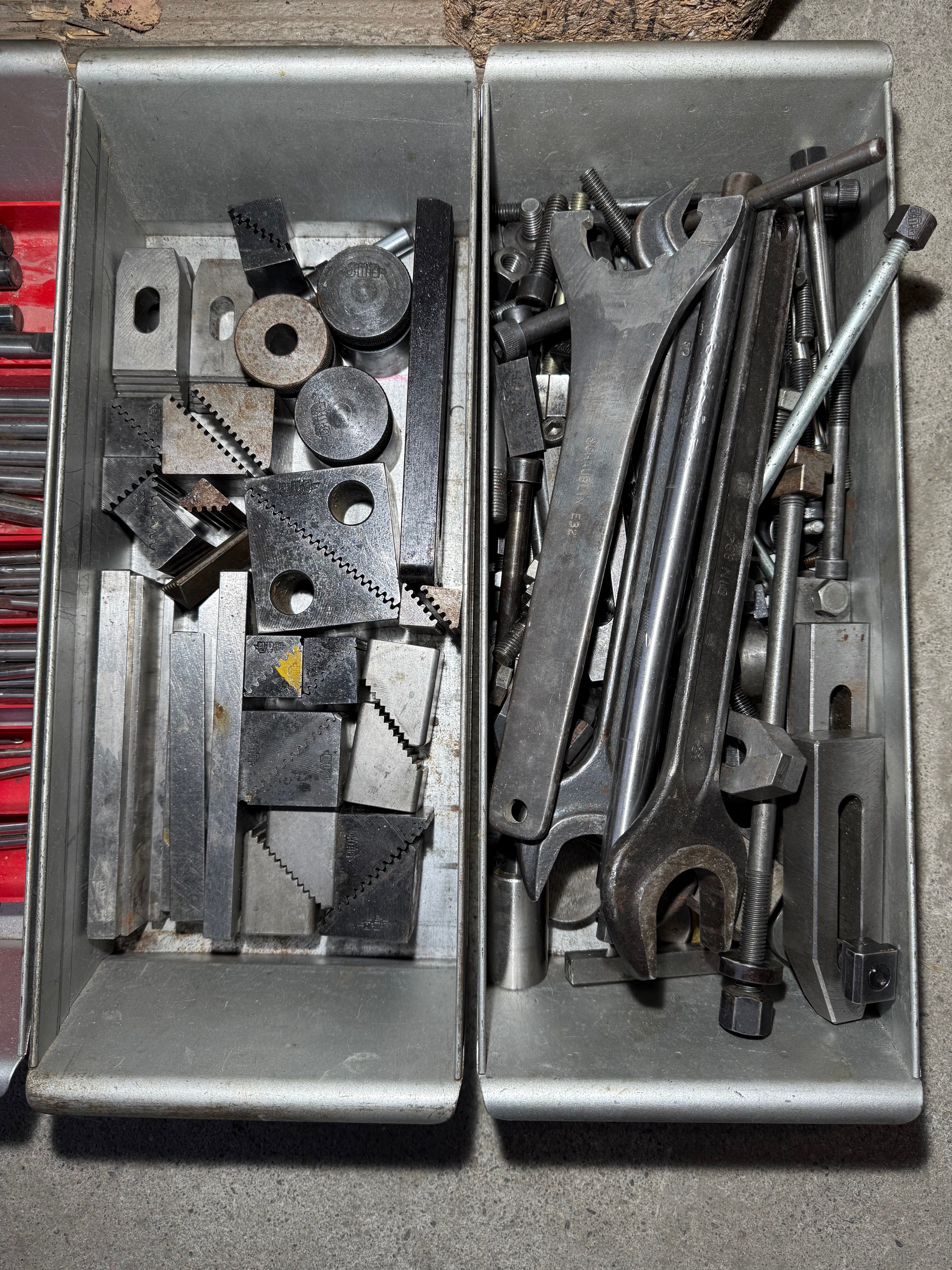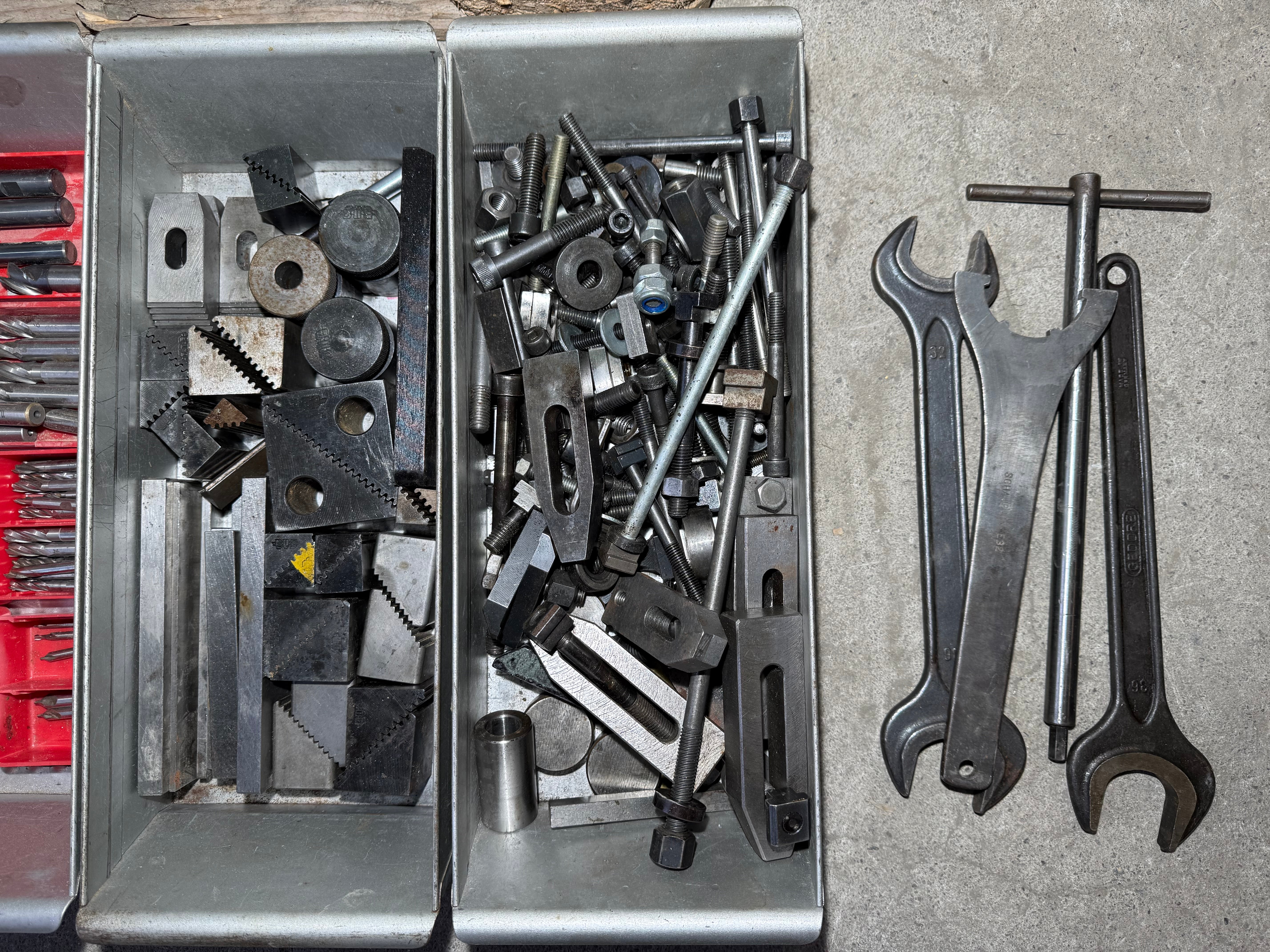 - Sehr viel Spannmaterial, Fräser, Aufnahmen, Gegenlager...
